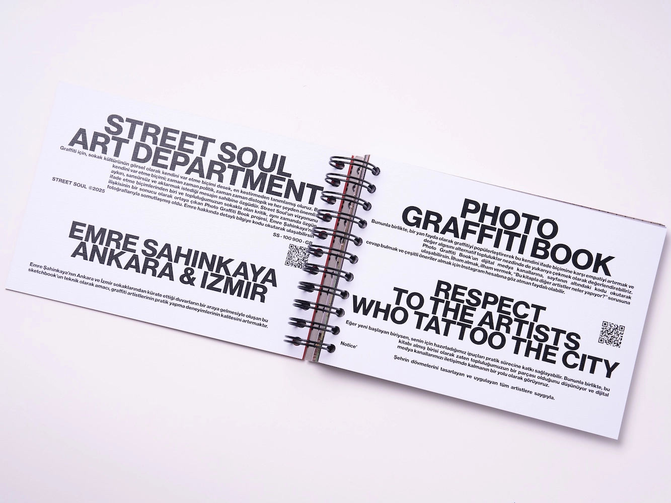 Bu defterde çeşitli şehirlerin erişmesi mümkün olmayan duvarları ve yüzeylerinde çizim pratiği yapabileceğiniz 46 sayfa bulunuyor. Kullanılan dokulu ve gramajlı kağıtlar her çizim alanında deneyiminizi kusursuz hale getirmek için özel olarak seçildi. Graffiti Book yalnızca graffiti artistler için değil çizim ile ilgilenen herkes için bir deneyim alanı yaratıyor. Bir binaya tırmanmış canavarlar hayal etmek ya da bir metro istasyonunda sahne kurgulamak...